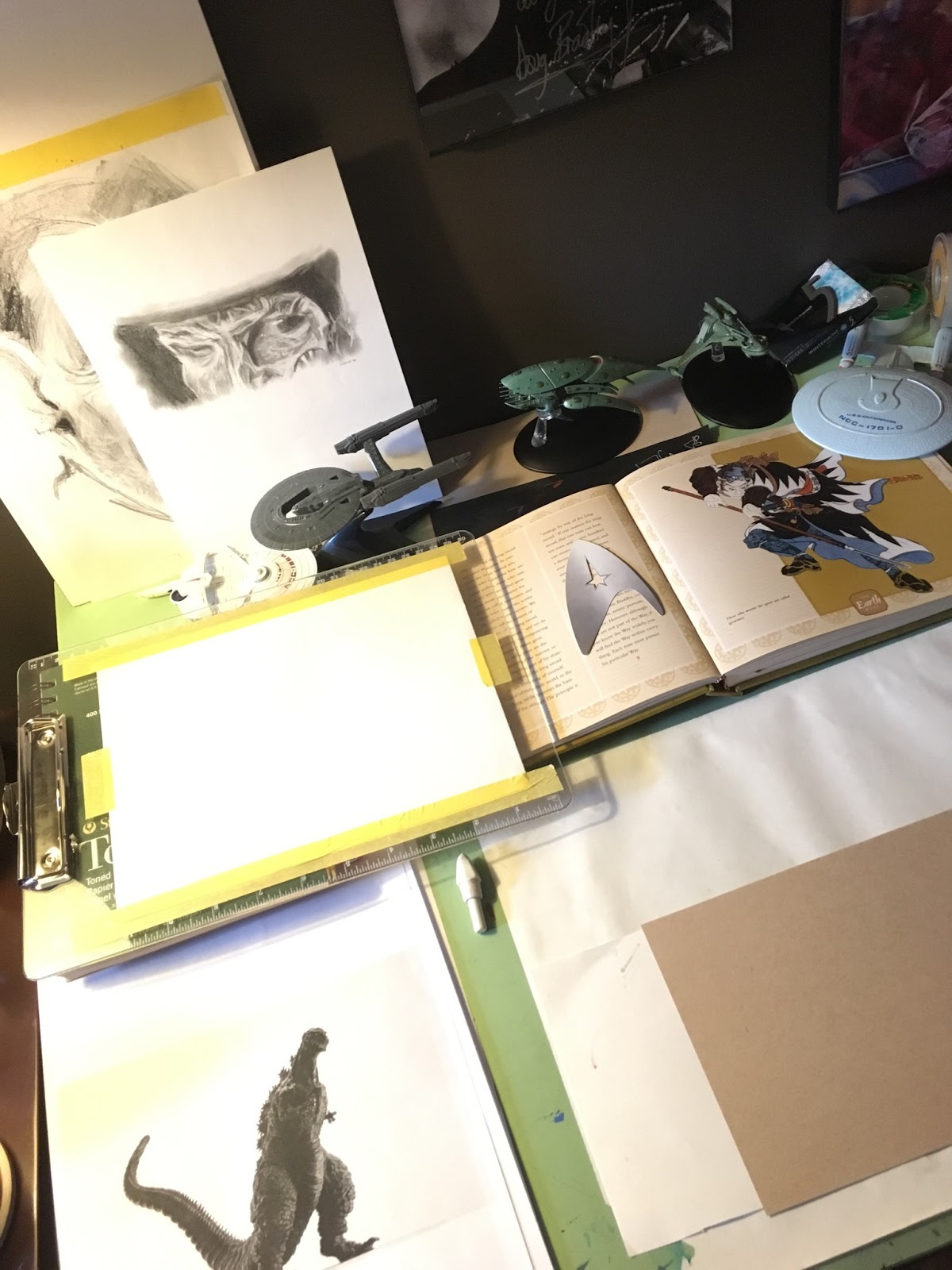 And finally a Godzilla head. I'm not entirely pleased with this one. I don't look at it as finished yet, ended up being a test bed for several different 'looks' - and the eyes are wonky. Sigh. Oh well, we learn by doing...onward.